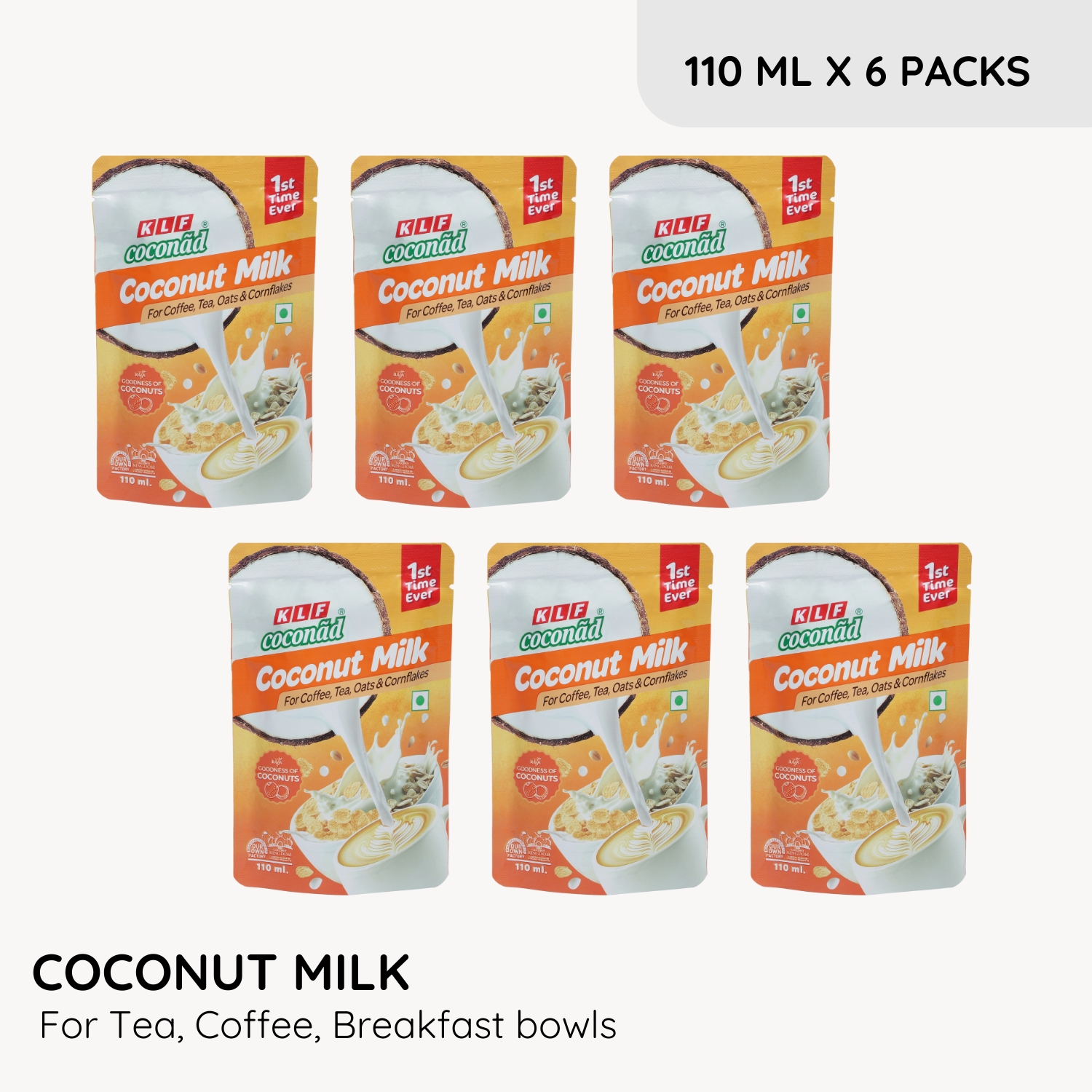 KLF Coconad Coconut Milk for Coffee, Tea, Cornflakes & Oats, 110 ml (Pack of 6)